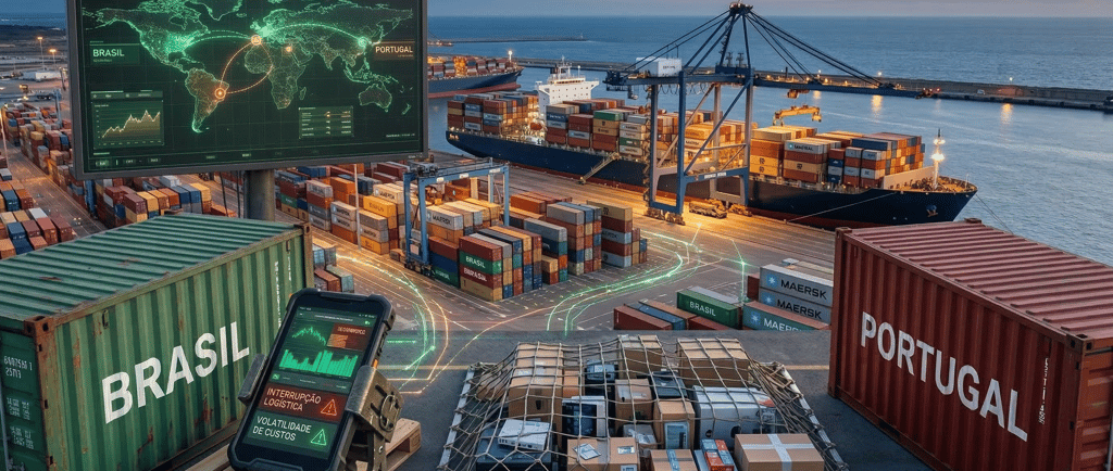 Vulnerabilidade Logística e Custos Transatlânticos: A instabilidade em rotas comerciais globais críticas, mesmo as distantes, cria um efeito cascata. Isso pode causar a interrupção de fluxos logísticos marítimos, forçando desvios caros ou atrasos crônicos em portos como Sines e Santos. O custo do frete torna-se imprevisível, e a entrega de "última milha" pode ser comprometida pela falta de previsibilidade na chegada de contêineres.